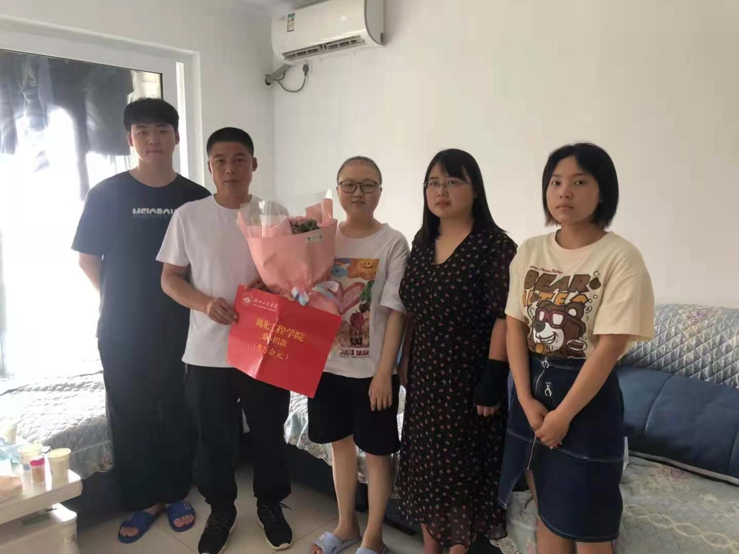我院党委副书记艾娜详细询问了李宛娴同学的病情和治疗情况,鼓励她勇敢同病魔斗争,为她送上学校、学院及全校师生的关心和祝福,希望她早日康复,回到学校继续学习。最后,艾书记将学校校内募捐的三万余元与捐款明细一同交给了李宛娴同学。李宛娴同学的父亲激动地说,我们一家人都万分感谢学校学院领导和老师对李宛娴的关心和帮助。