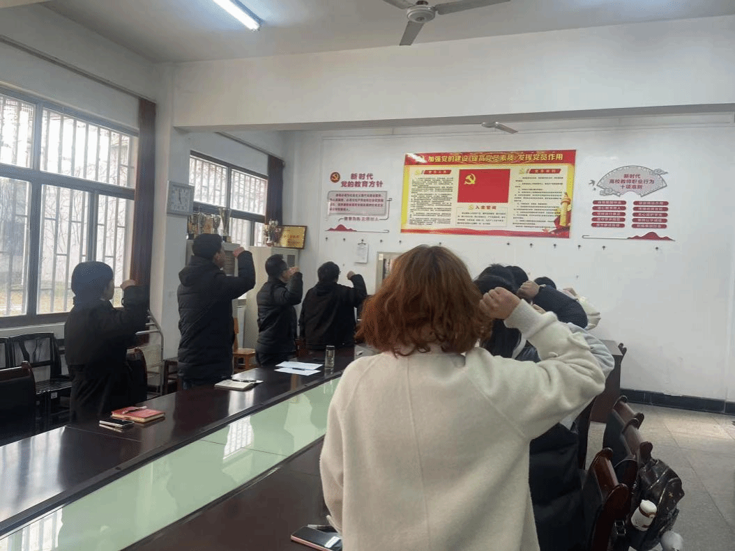 支部主题党日活动上,支部党员依次交纳了党费,并在苏艺涵同志的带领下集体重温入党誓词,诵读《中国共产党章程》第十章内容。张婉玲同志领学了习近平总书记近期重要讲话和重要指示批示精神;刘筱妍同志领学了《教育强国建设规划纲要(2024-2025)》;任双同志领学了2025年全国教育工作会议精神;刘玲同志领学了中央、省、市相关会议精神;杨成果同志领学了《湖北省纪委最新通知》和《省纪委发出通知严肃查处党员干部、公职人员违规打牌和赌博活动》精神;李煌成同志领学了学校2025年全面从严治党工作会议精神;许晓悦同志领学了《新一轮审核评估指标体系内涵》《太阳集团本科教育教学审核评估自评报告》等材料;每位同志领学完毕后都向大家分享了自己的感受和感想,并进行交流发言。