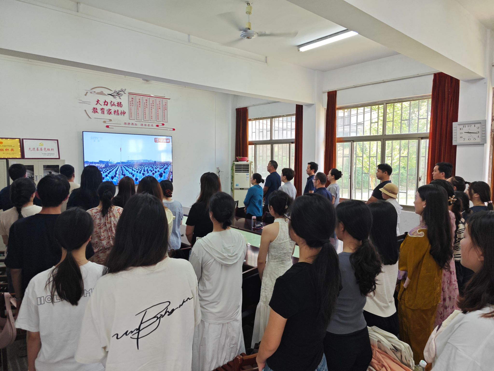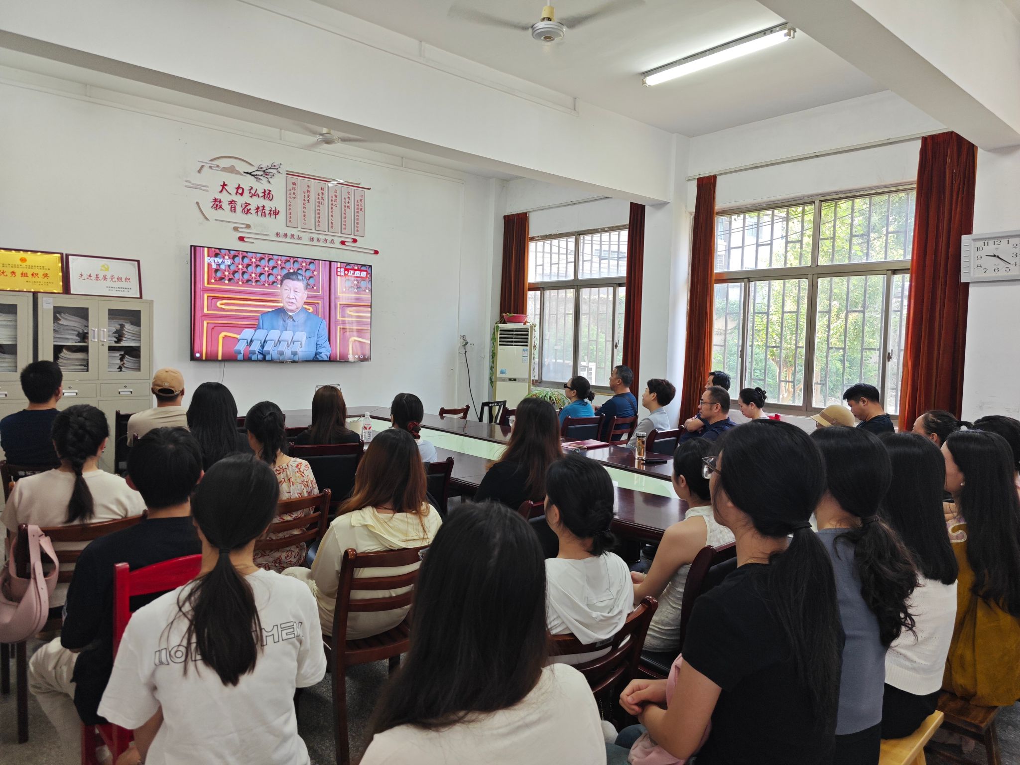 9月3日上午,纪念中国人民抗日战争暨世界反法西斯战争胜利80周年大会在北京天安门广场隆重举行。太阳集团tyc138党委组织党委委员、党员干部、党外人士及学生党员干部在院会议室集中收看了阅兵式。阅兵式开始前,学院党委书记姜涛向全体师生介绍了此次阅兵的重要意义,强调要铭记历史、缅怀先烈、珍爱和平、开创未来。