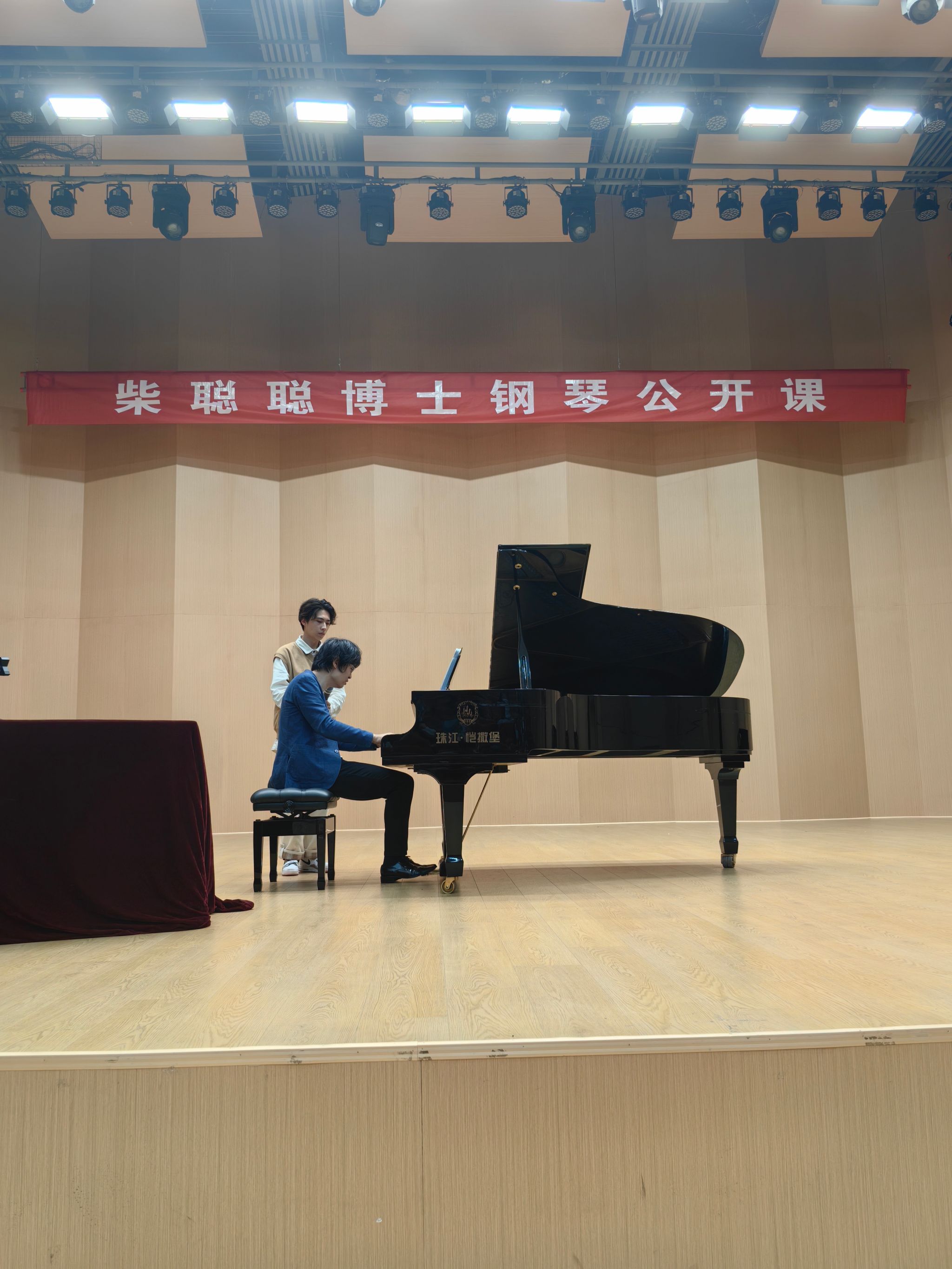 讲座结束后,柴博士为我院毕炫、李钊晨同学上公开课,通过巴赫十二平均律中的《赋格》讲授了巴洛克作品的触键与乐句的处理,柴可夫斯基《杜姆卡》开头部分的引子,为我们展示了如何将音符很少的乐句弹得深刻而有精神内涵。