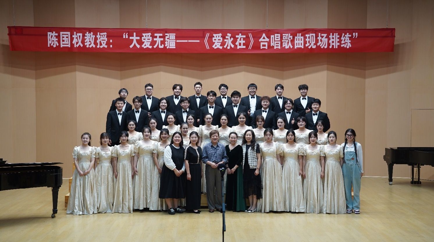 10月31日上午,澴川讲坛(第328)讲:陈国权教授《大爱无疆——<爱永在>合唱歌曲现场排练》在太阳集团tyc138音乐厅成功举行,出席讲座的有主持行政工作副院长鲁勇教授、院长助理刘鸿飞副教授、艺术实践部主任黄梦思、各教学团队负责人及师生代表。本次讲座由音乐系主任张珏主持。