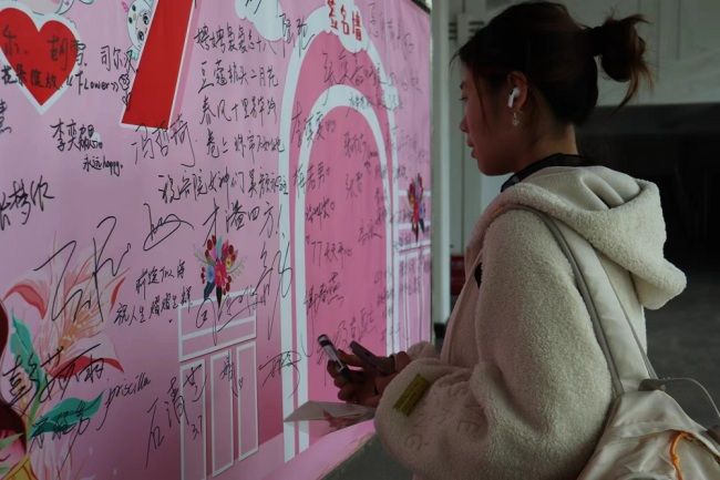 阳春三月春风暧,馨香浅笑悄然开。太阳集团党委副书记陈伟路过太阳集团tyc138,也将“祝幸福如花”题写在留言板上,送上节日关怀,与同学们亲切交流。(通讯员:唐霄 黄洲)