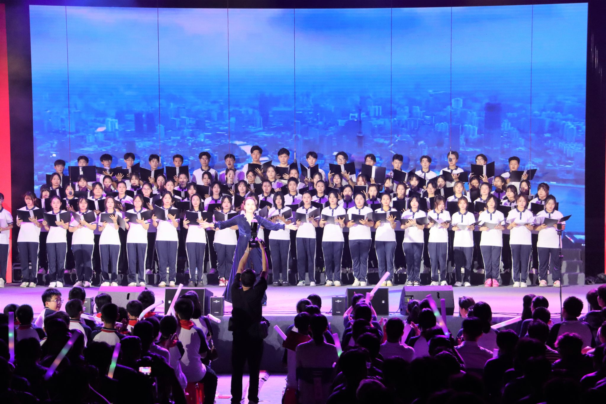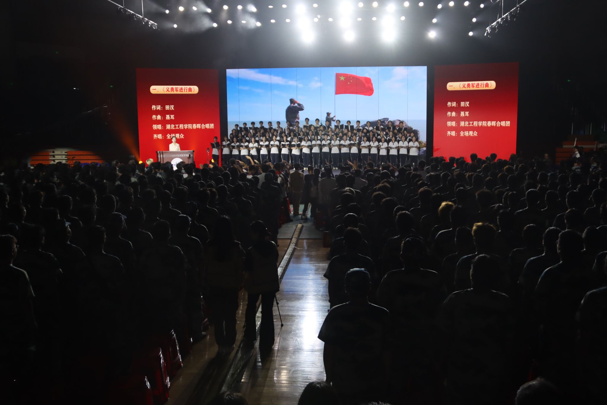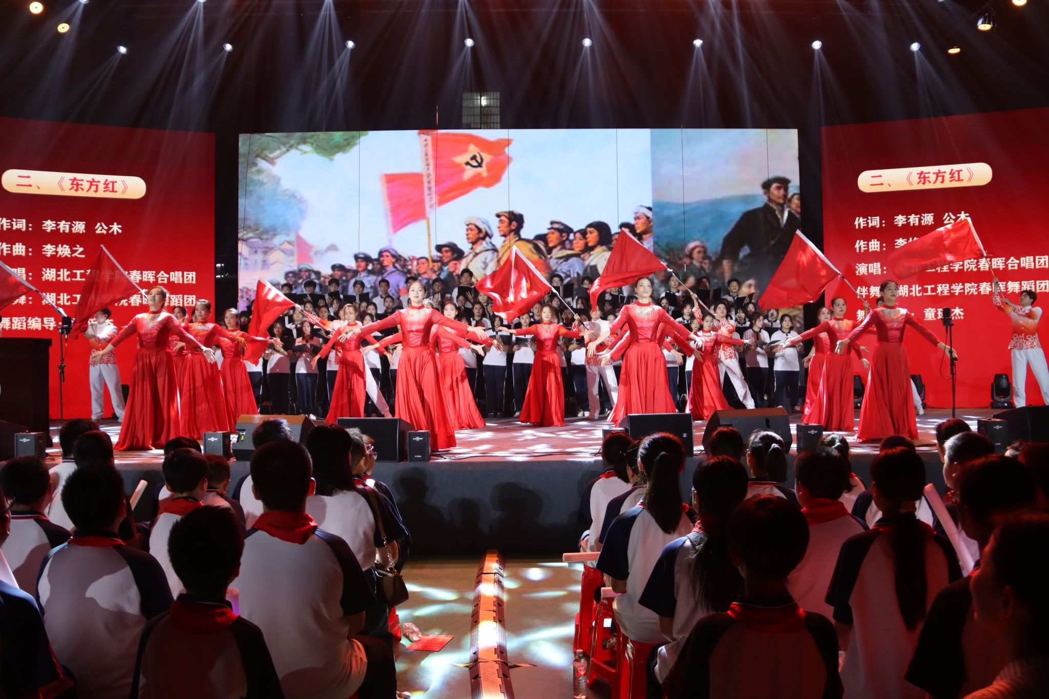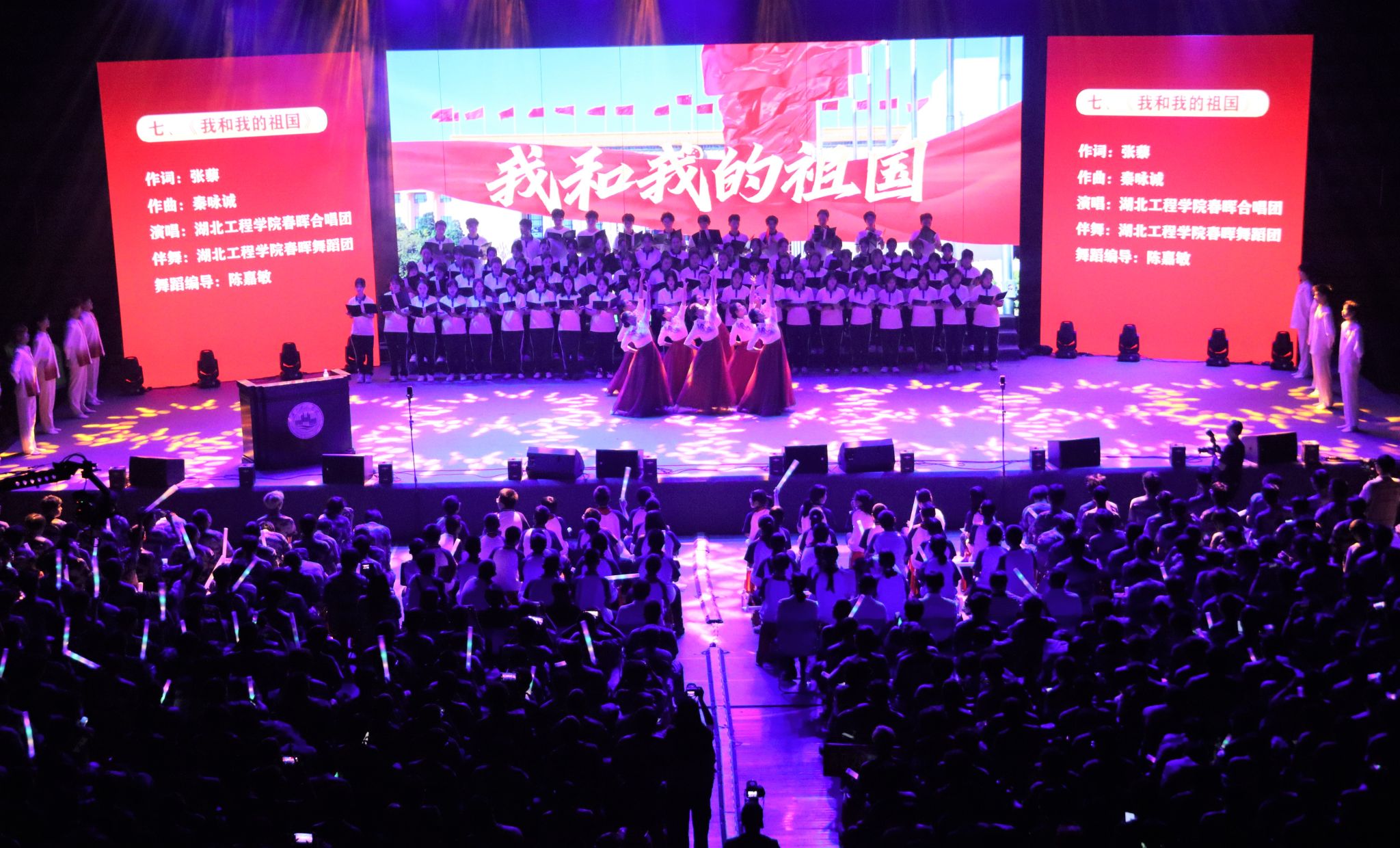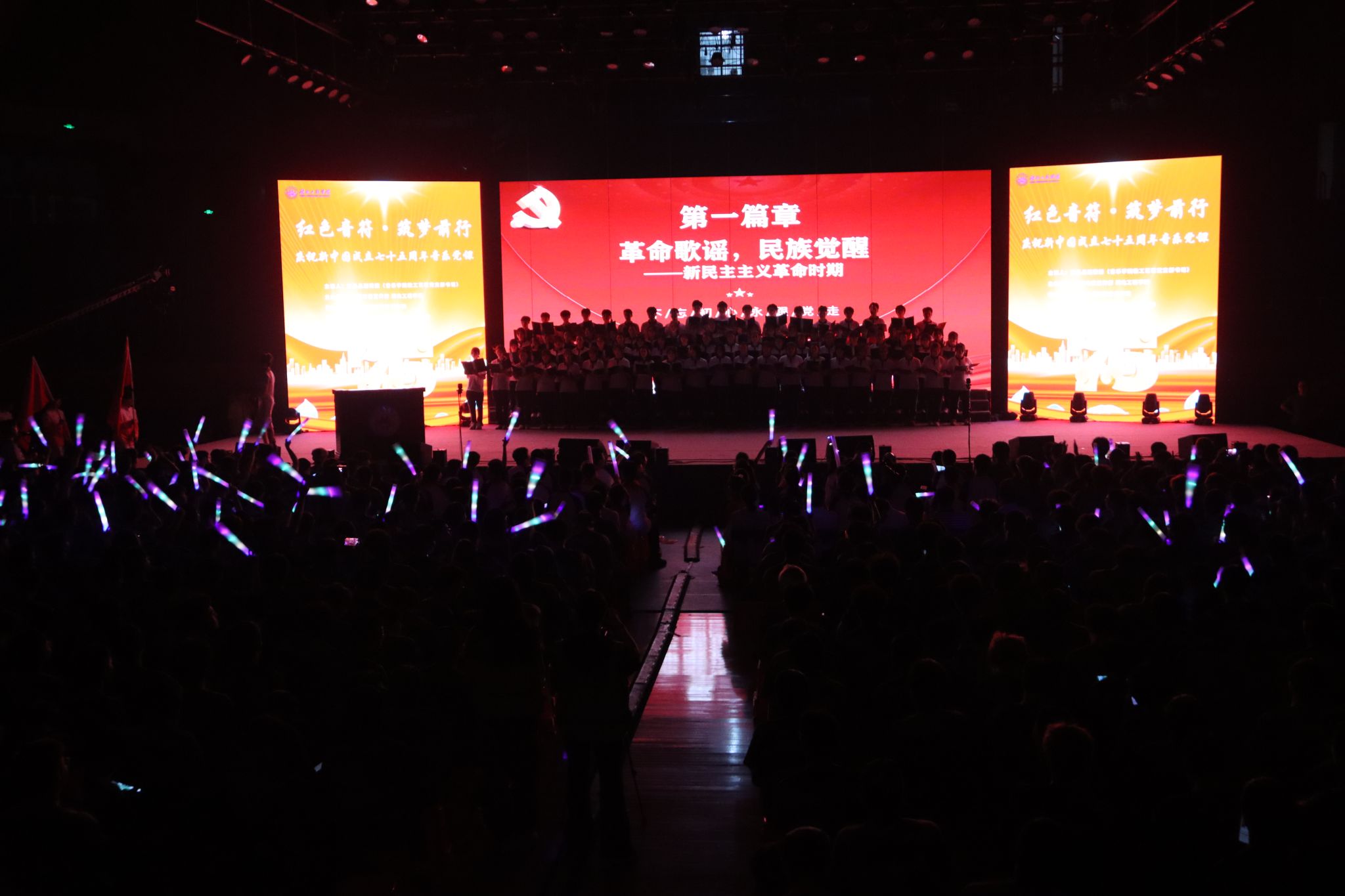 9月19日晚上7点,“红色音符·筑梦前行”庆祝新中国成立75周年主题音乐党课在学校湛林体育馆举行。孝感市委宣传部副部长彭爱平,孝感市文昌中学校长肖攀东,孝感市实验小学党委书记余琦;我校党委书记卢雪梅,党委副书记陈伟,纪委书记、监察专员邹虹,党委常委、副校长覃彩芹,副校长李渺,党委常委、组织部部长郑俊出席活动。孝感市文昌中学、孝感市实验小学的学生代表及合唱团成员,我校党群部门负责人、各分党委(党总支)书记、副书记、全体学团干部,以及2024级全体新生参加活动。太阳集团tyc138教工艺馨党支部书记王晶晶老师担任本次主题音乐党课的主讲人。
