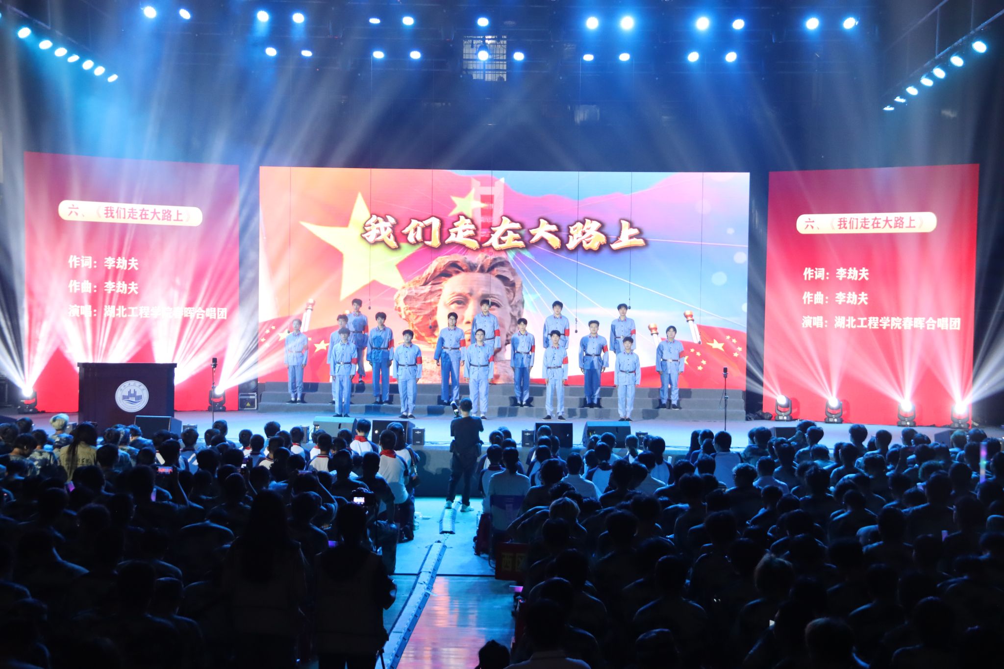 随着雄壮激昂的《国际歌》旋律缓缓升起,春晖管弦乐团和春晖合唱团的深情演绎穿越时空,正式拉开了红色音乐主题党课帷幕,引领观众步入一段段波澜壮阔的历史长河。本次红色音乐主题党课,以“红色音符·筑梦前行”为主题,共四个篇章:革命歌谣、民族觉醒——新民主主义革命时期;革命旋律、建设乐章——社会主义革命与建设时期;改革音符、时代华章——改革开放和社会主义现代化建设新时期;音乐同行、复兴之路——中国特色社会主义新时代。《义勇军进行曲》《东方红》《没有共产党就没有新中国》《歌唱祖国》《社会主义好》《我们走在大路上》《我和我的祖国》《春天的故事》《不忘初心》《少年中国说》《走向复兴》,以音乐为舟,以信念为帆,在激昂澎湃的音乐声中,共同回溯党的光辉足迹,感受那份在革命烽火中淬炼出的坚定与执着,让心灵在红色旋律中得到洗礼和升华。