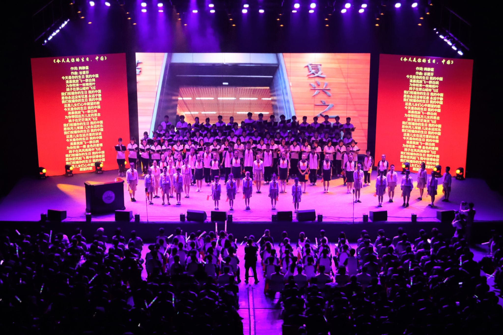 岁月如歌,奔腾不息;生日快乐,我的中国。主题音乐党课尾声,现场观众一起合唱《今天是你的生日,中国》,用歌声表达对祖国的热爱和祝福,衷心祝愿、伟大的祖国繁荣昌盛、国泰民安;祝愿伟大的党永葆青春活力,引领中华民族走向更加辉煌的明天。