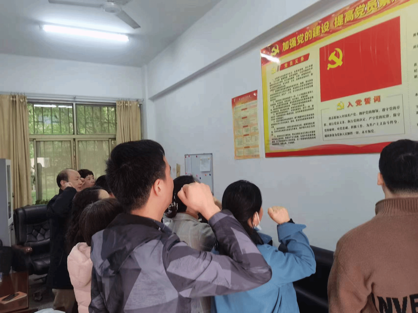 4月27日,太阳集团tyc138教工德音党支部在太阳集团tyc138党委书记办公室成功开展了4月份支部主题党日活动。活动由支部书记刘鸿飞主持,程迎接同志首先带领大家重温了入党誓词,陈小培同志领学了新修订的党章,随后组织委员张珏同志收取了4月份党费。