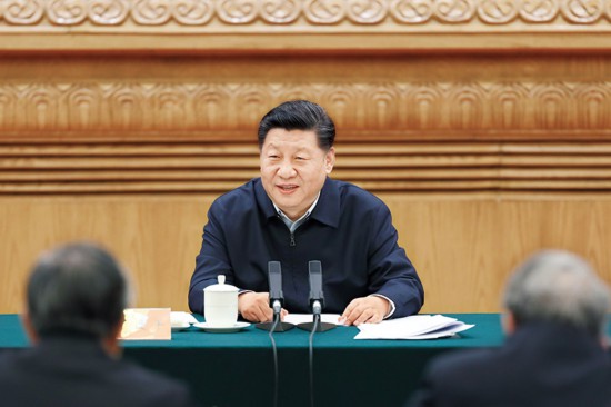 2019年3月18日,中共中央总书记、国家主席、中央军委主席习近平在北京主持召开学校思想政治理论课教师座谈会并发表重要讲话。 新华社发 盛佳鹏/摄