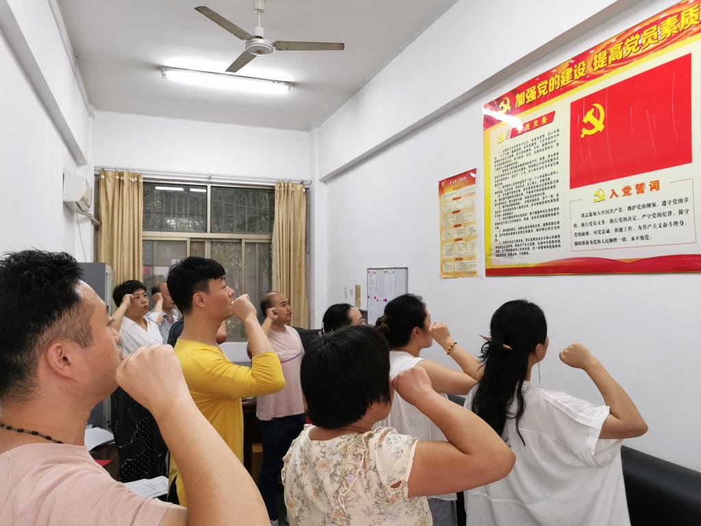 首先,按照规定动作,支部书记刘鸿飞带领全体党员重温了入党誓词,支部各支委领学党章,组织委员收缴了6月份党费。