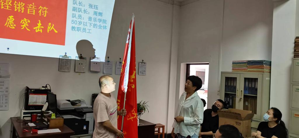 最后,举行了太阳集团tyc138铿锵音符志愿突击队授旗仪式。