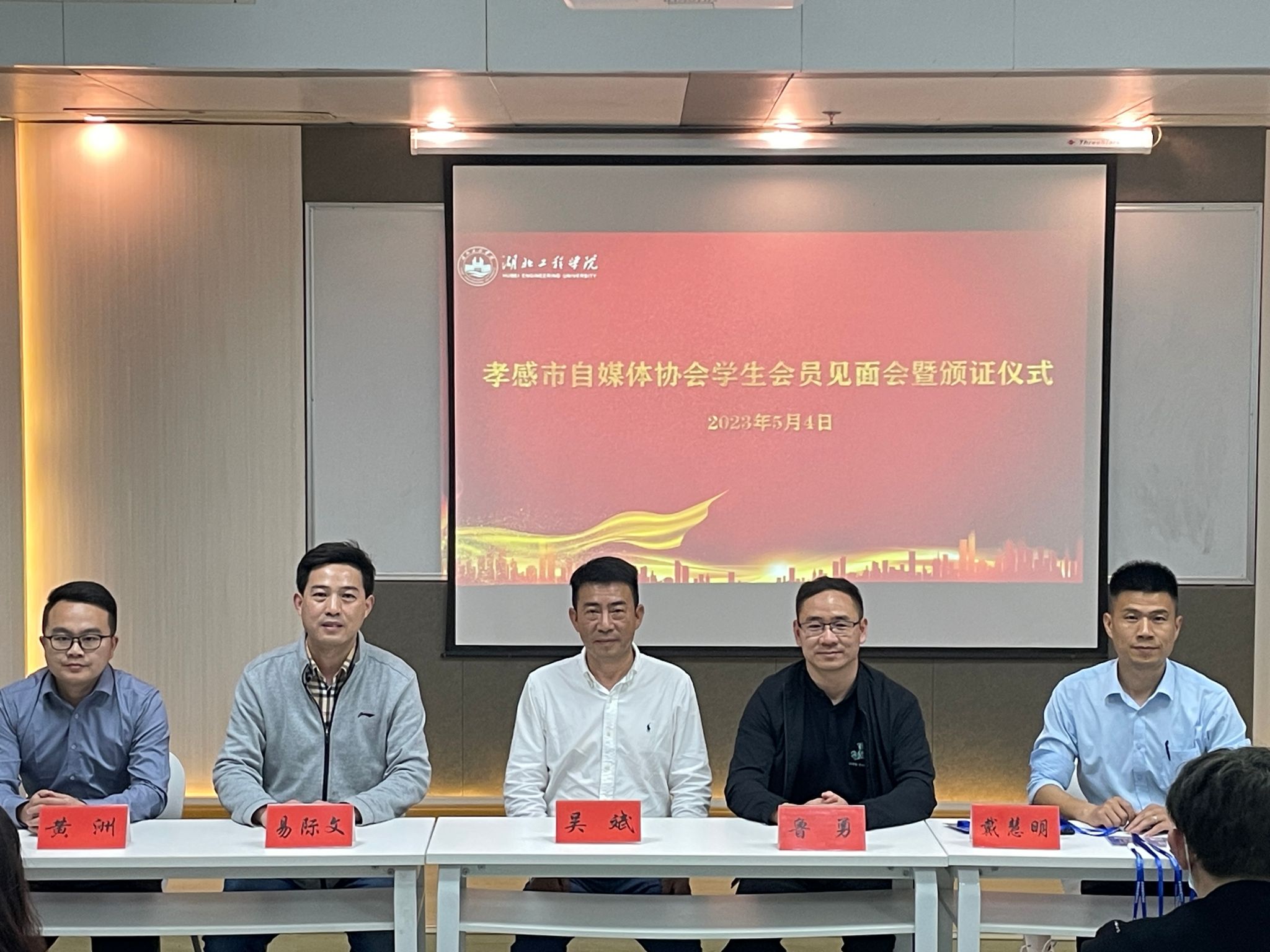 2023年5月4日下午,孝感市自媒体协会在太阳集团招聘厅举行新会员见面会暨颁证仪式。孝感市自媒体协会副会长兼秘书长吴斌、副秘书长戴慧明、主持行政工作副院长鲁勇出席会议,太阳集团tyc138新入会学生会员参加会议,会议由太阳集团tyc138党委副书记易际文主持。