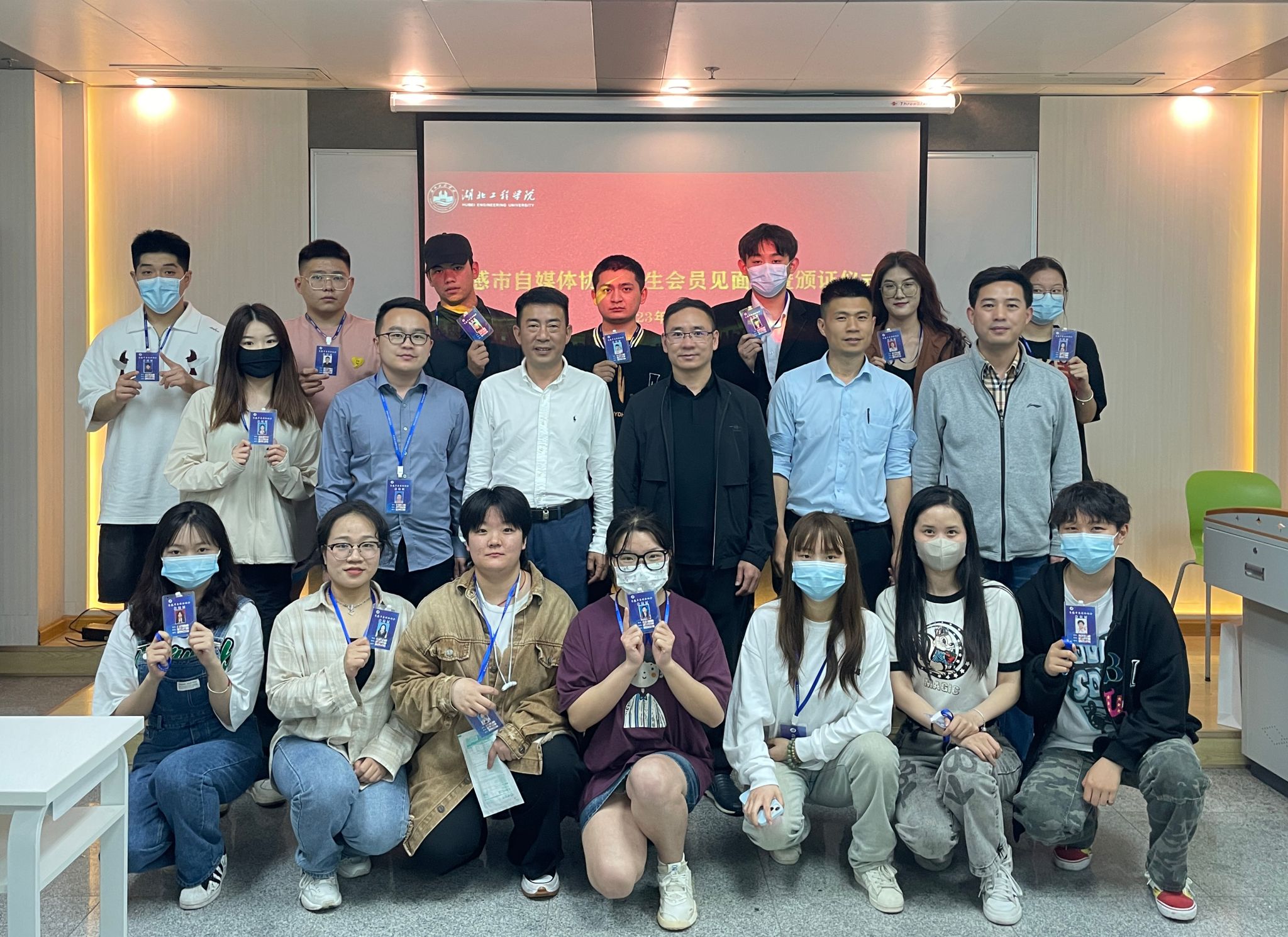 吴斌为每一位新会员颁发会员证,并对新会员表示欢迎和祝贺。同时,向与会领导与新会员介绍了自媒体协会的基本情况等,希望新会员们尽快融入协会大家庭,并通过交流学习,开阔眼界,更好地讲好湖工故事、孝感故事,传播好湖工声音、孝感声音,充分展现青春力量。