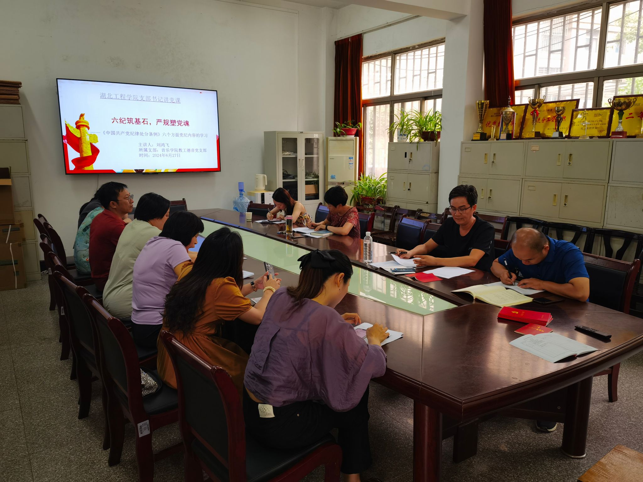 党支部书记刘鸿飞同志以《六纪筑基石,严规塑党魂》为题,结合党的六项纪律和学院实际工作,辅以典型案例,为党员们上了一堂生动的纪律党课。他强调,严明的纪律规定不仅是维护党的团结统一和行动一致的保障,更是塑造党的灵魂和核心价值观的关键。