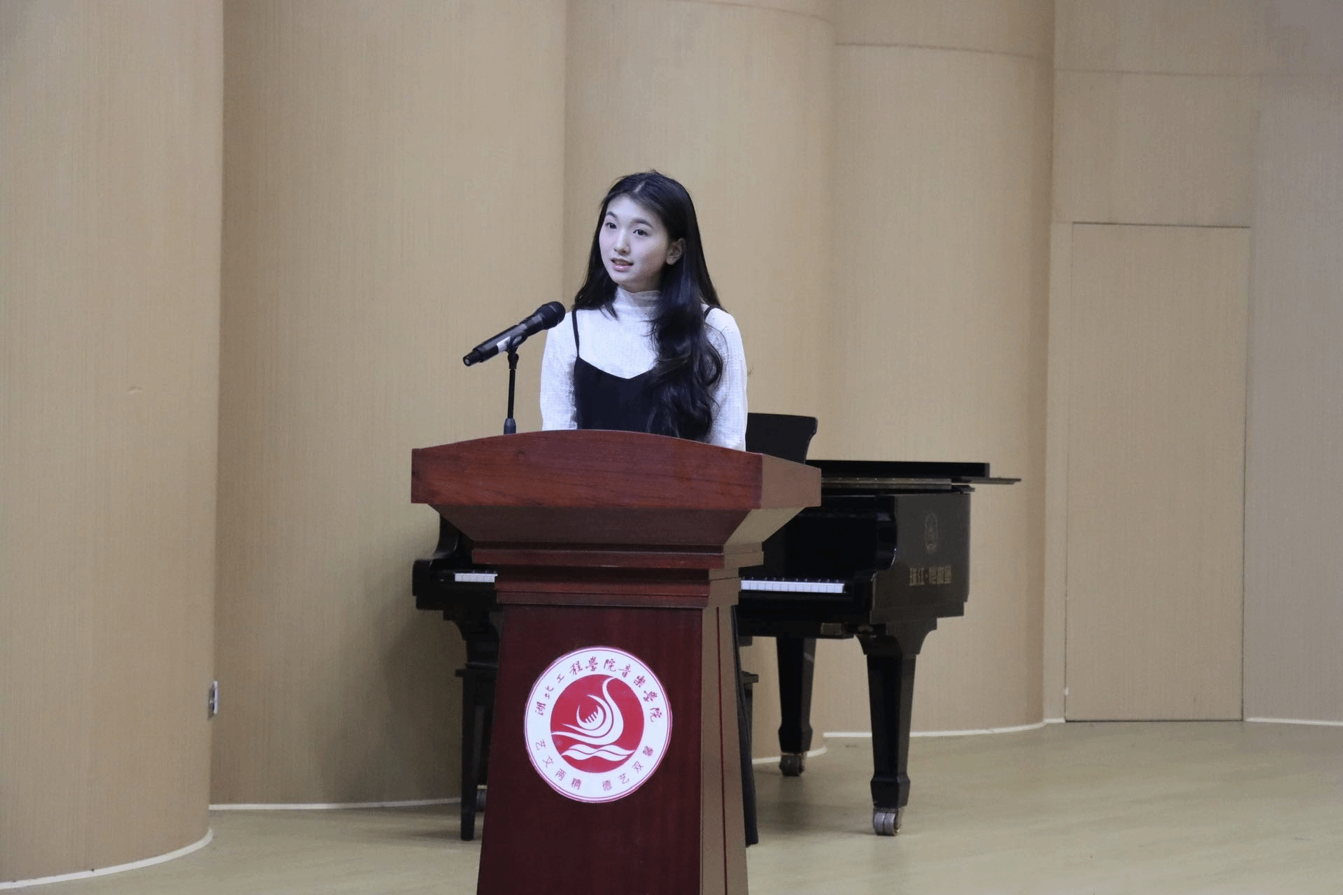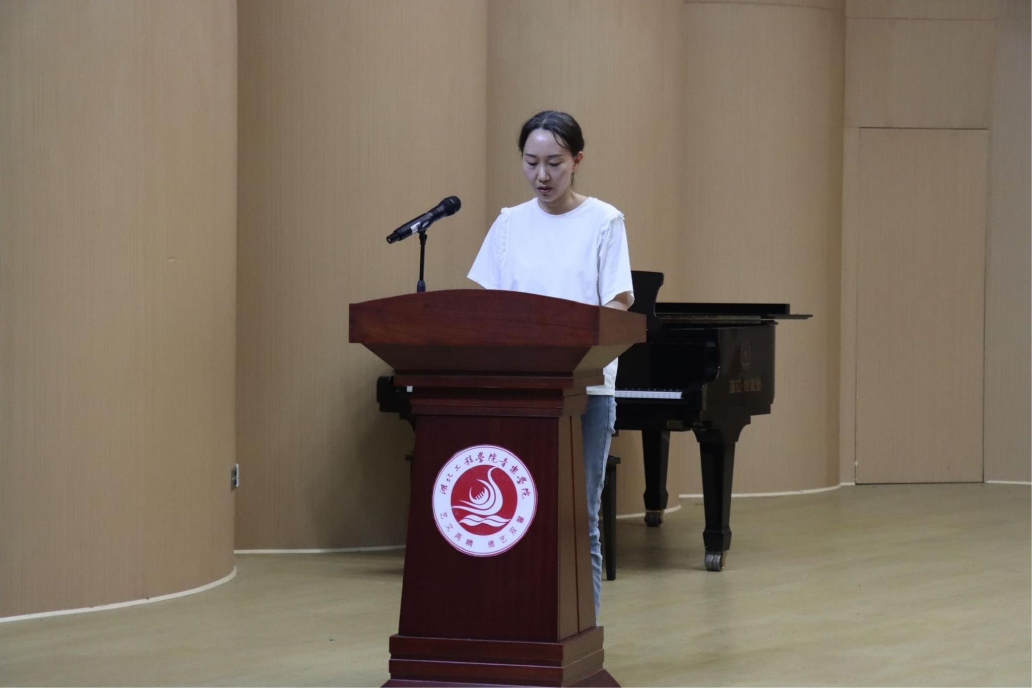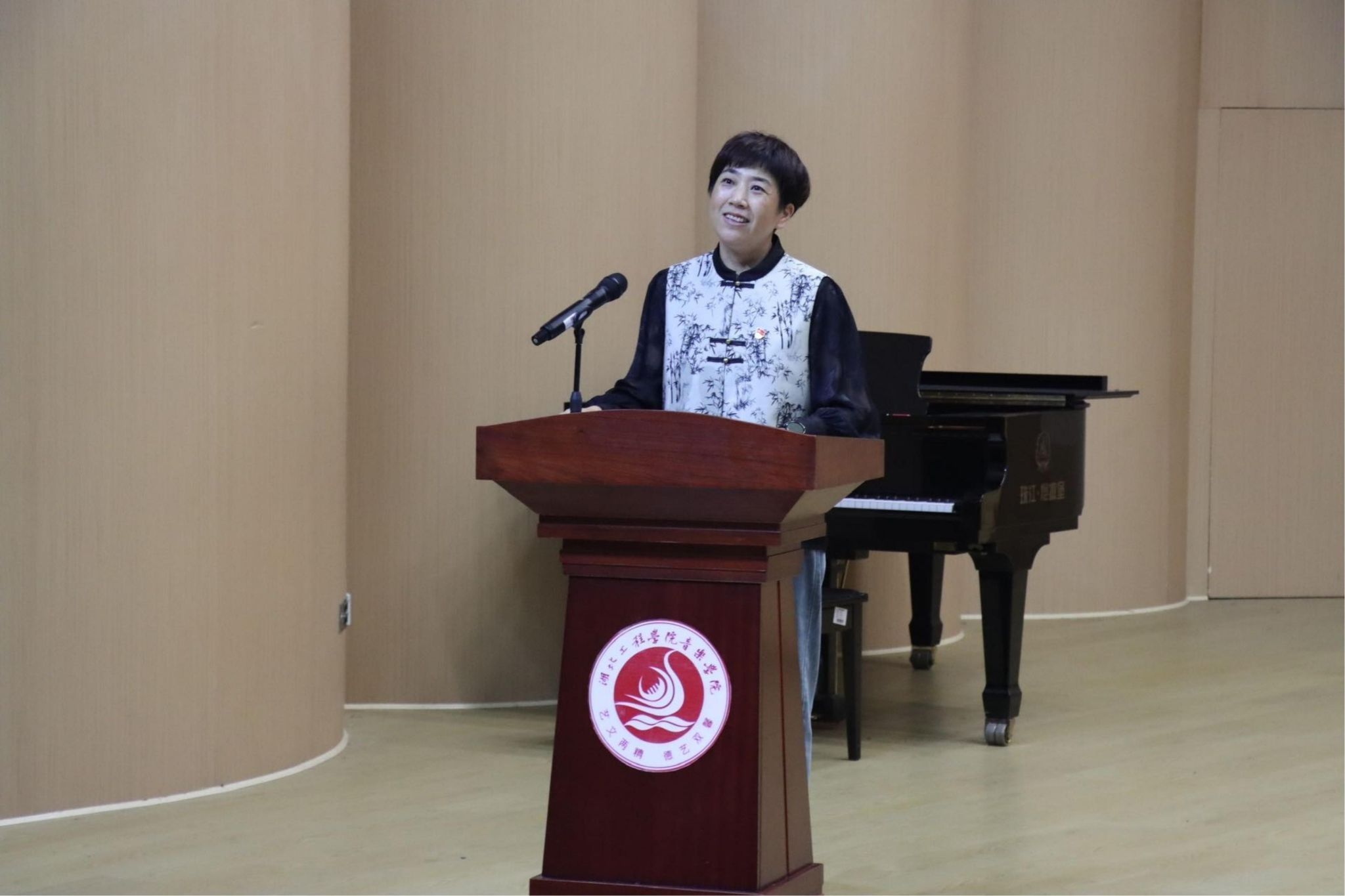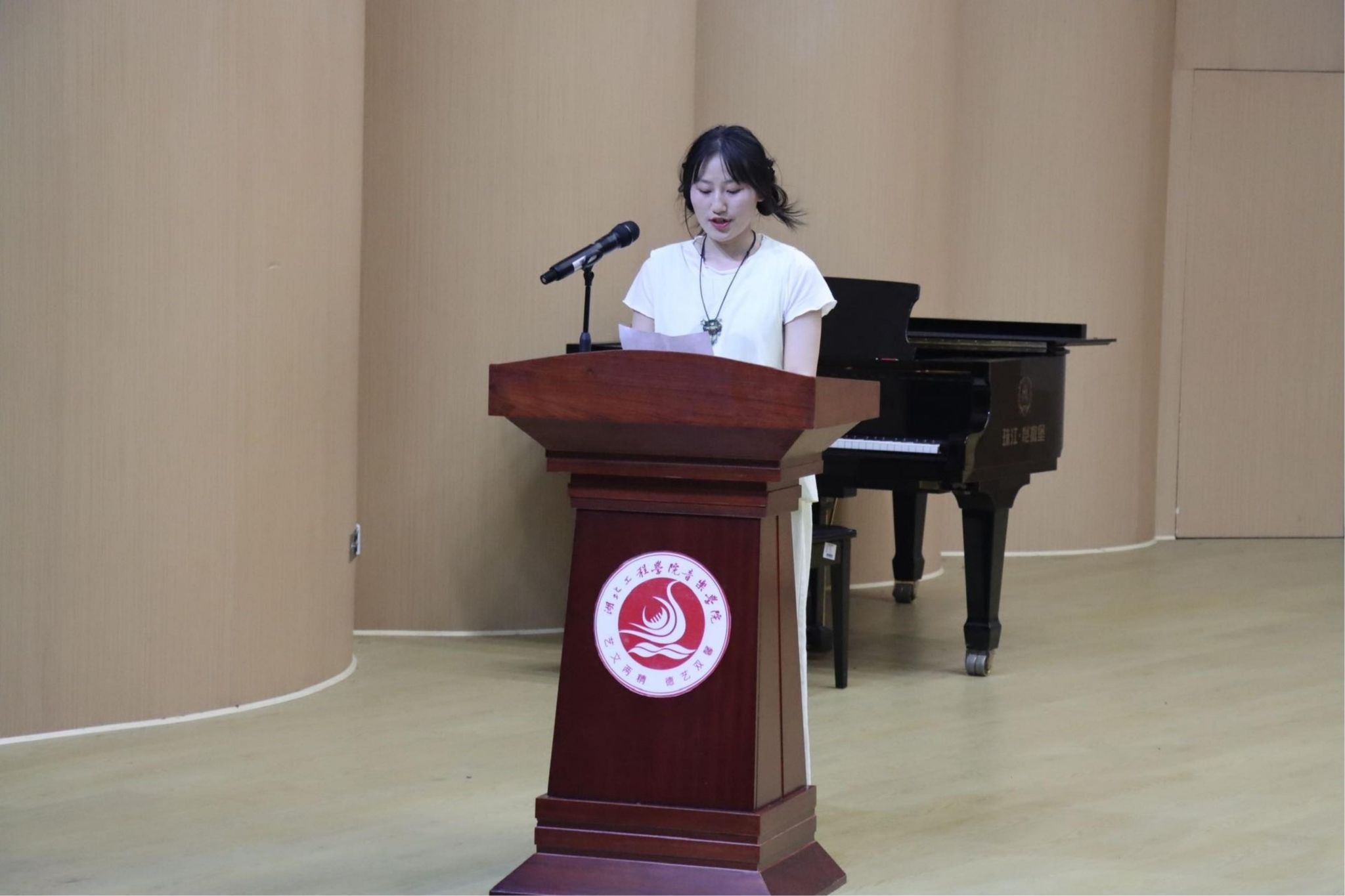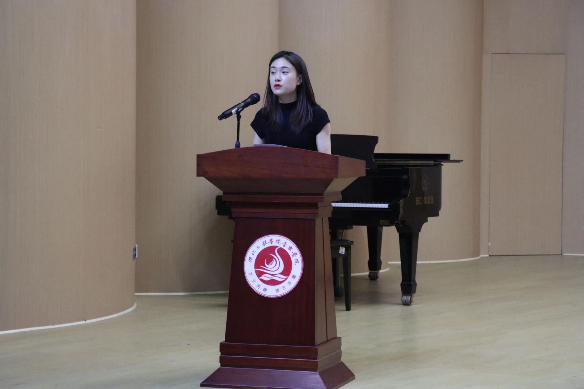 紧接着,优秀实习指导教师代表程丽和实习基地指导教师代表孝感市黄香路小学音乐教研组欧阳紫薇分别上台发言。她们分享了实践教学过程中的成功案例和心得体会,并对未来的实践教学工作提出了宝贵的建议和展望。